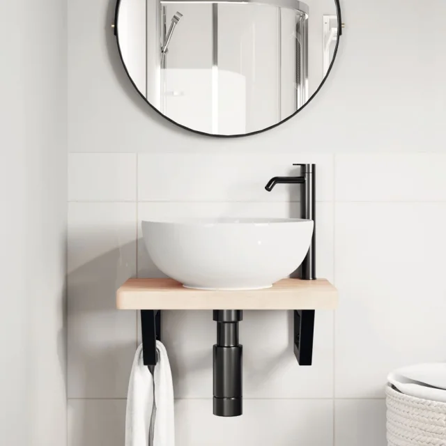 vidaXL Stenska polica za umivalnik jeklo in trdna bukovina