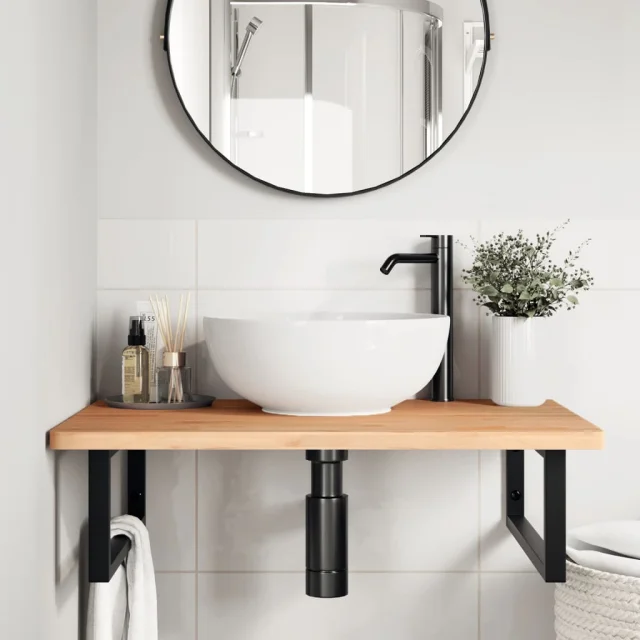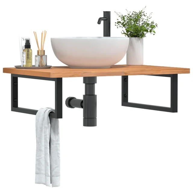 vidaXL Stenska polica za umivalnik jeklo in trdna bukovina