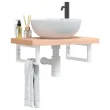 vidaXL Stenska polica za umivalnik jeklo in trdna bukovina