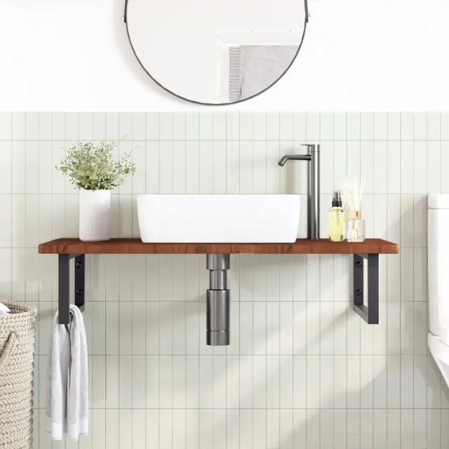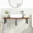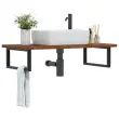 vidaXL Stenska polica za umivalnik jeklo in trdna hrastovina