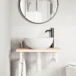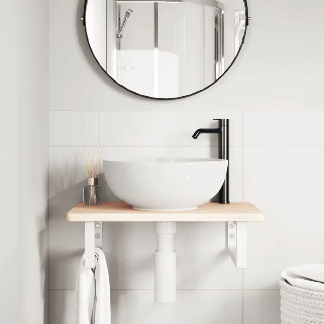 vidaXL Stenska polica za umivalnik jeklo in trdna hrastovina