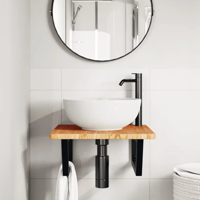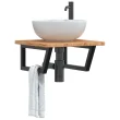 vidaXL Stenska polica za umivalnik jeklo in trdna hrastovina