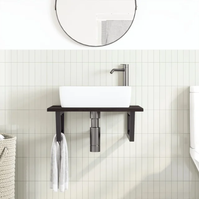 vidaXL Stenska polica za umivalnik jeklo in trdna hrastovina