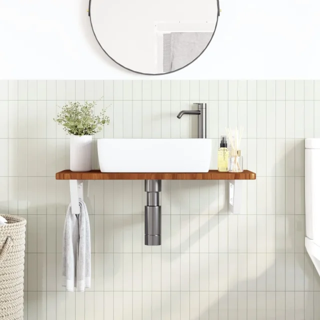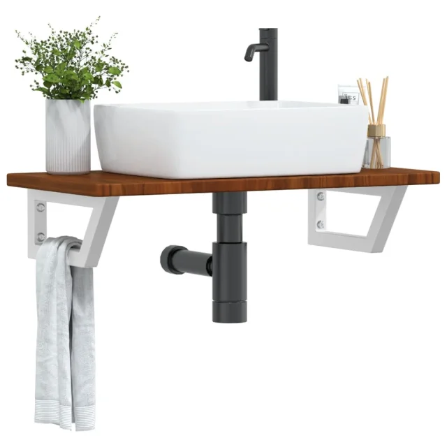 vidaXL Stenska polica za umivalnik jeklo in trdna hrastovina
