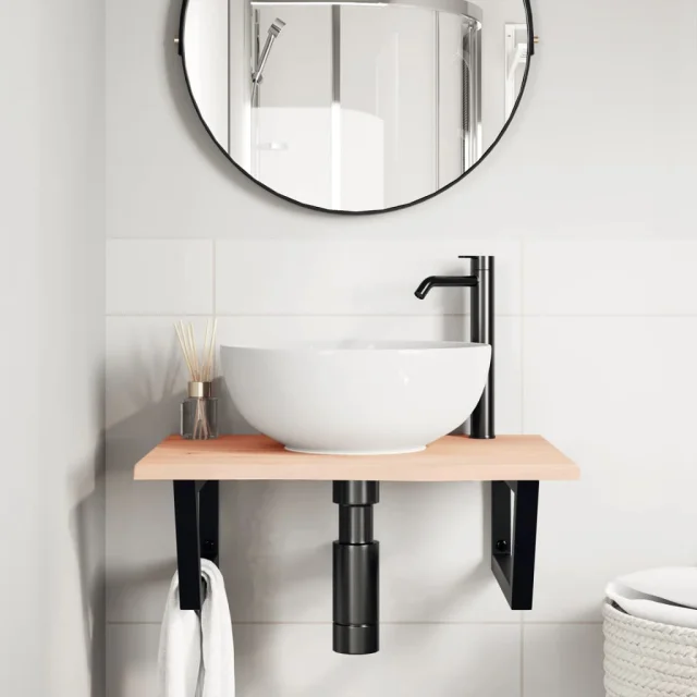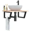 vidaXL Stenska polica za umivalnik jeklo in trdna hrastovina