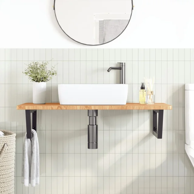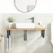 vidaXL Stenska polica za umivalnik jeklo in trdna hrastovina