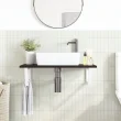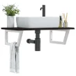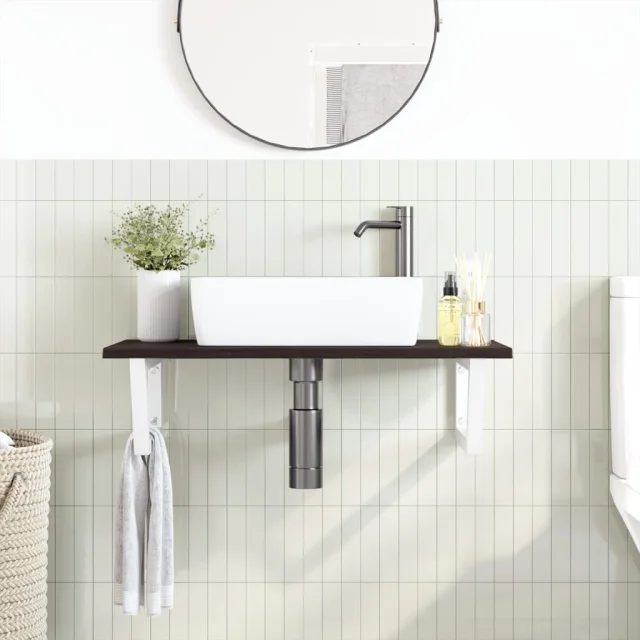 vidaXL Stenska polica za umivalnik jeklo in trdna hrastovina