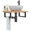 vidaXL Stenska polica za umivalnik jeklo in trdna hrastovina
