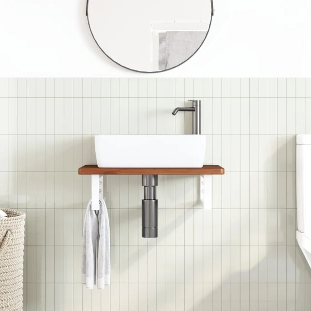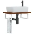 vidaXL Stenska polica za umivalnik jeklo in trdna hrastovina