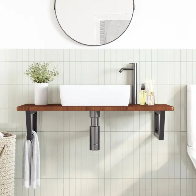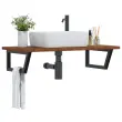 vidaXL Stenska polica za umivalnik jeklo in trdna hrastovina