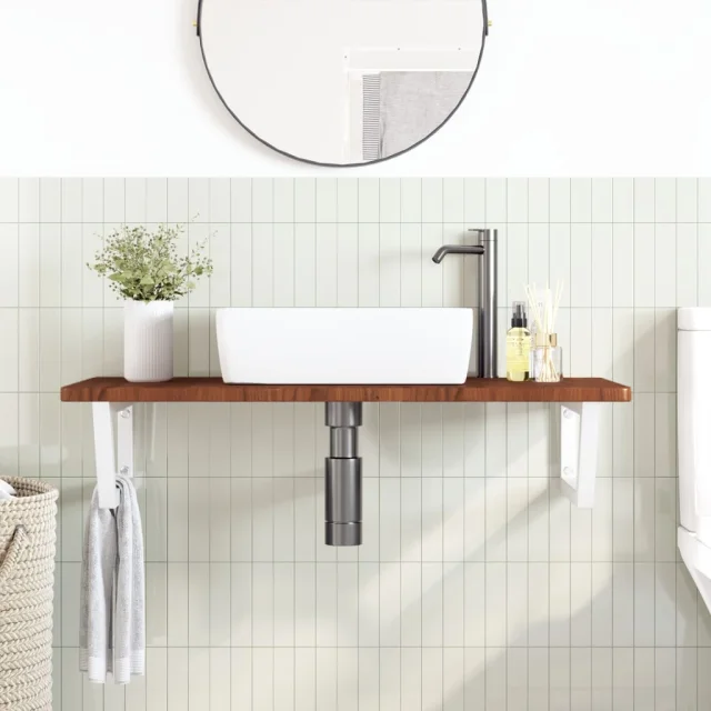 vidaXL Stenska polica za umivalnik jeklo in trdna hrastovina