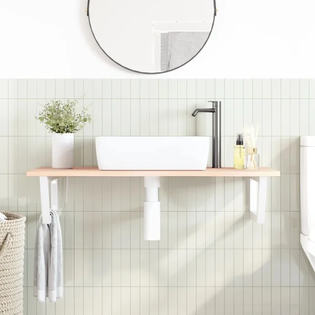 vidaXL Stenska polica za umivalnik jeklo in trdna hrastovina