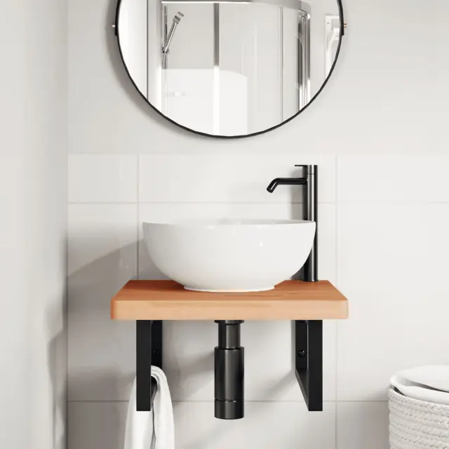vidaXL Stenska polica za umivalnik jeklo in trdna bukovina