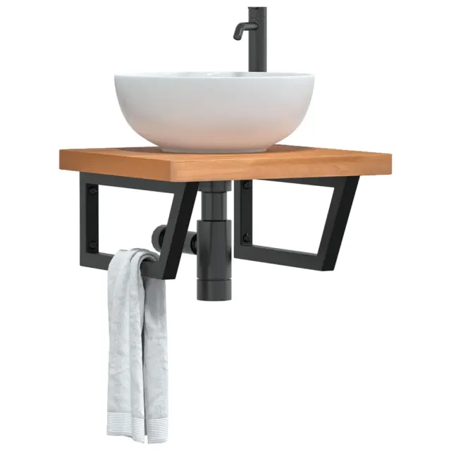 vidaXL Stenska polica za umivalnik jeklo in trdna bukovina