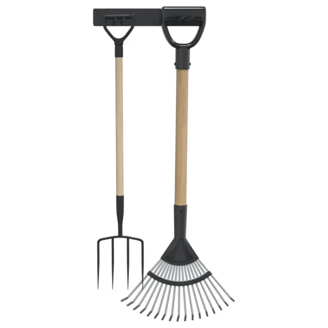 vidaXL Stenska stojalo za shranjevanje vrtnega orodja črn jeklen