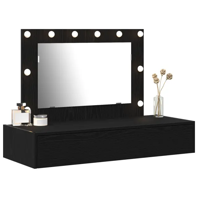 vidaXL stenska toaletna miza z LED lučmi v črnem hrastu