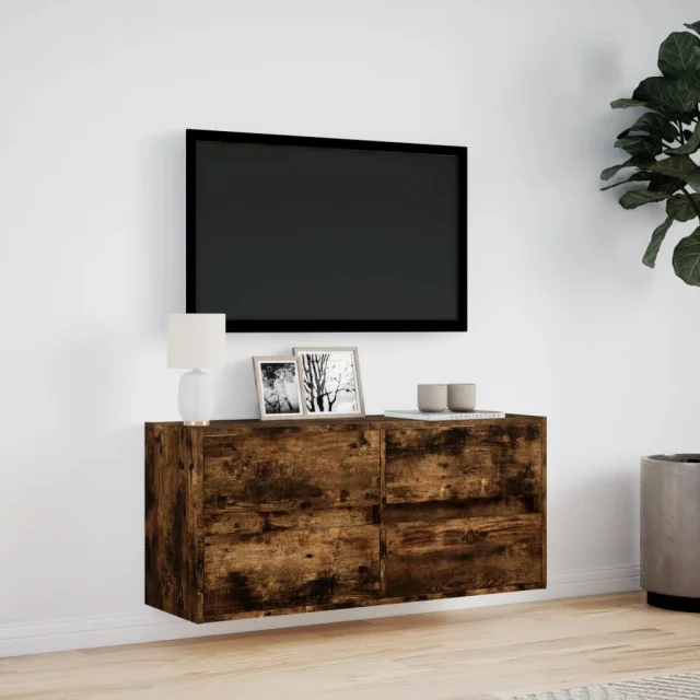 vidaXL Stenska TV omarica z LED lučkami dimljeni hrast 100x31x45 cm