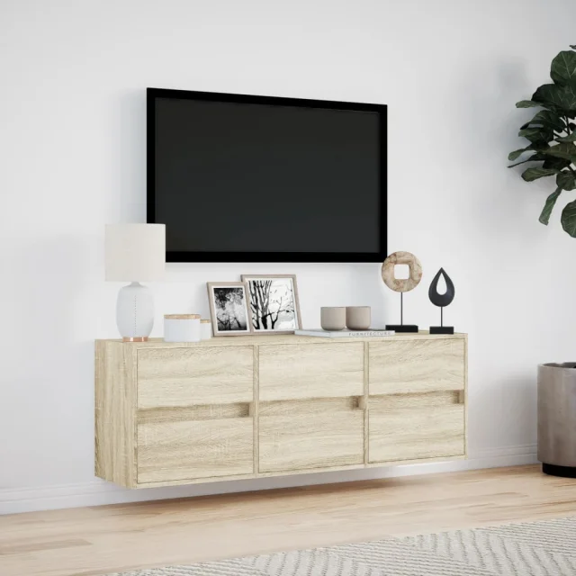 vidaXL Stenska TV omarica z LED lučkami sonoma hrast 130x31x45 cm