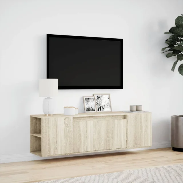 vidaXL Stenska TV omarica z LED lučkami sonoma hrast 135x31x39,5 cm