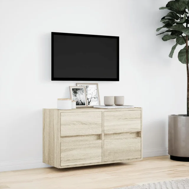 vidaXL Stenska TV omarica z LED lučkami sonoma hrast 80x31x45 cm