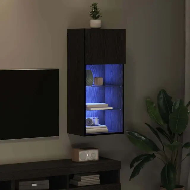 vidaXL Stenska TV omarica z LED lučmi Črna Orehovina 40,5 x 30 x 90 cm
