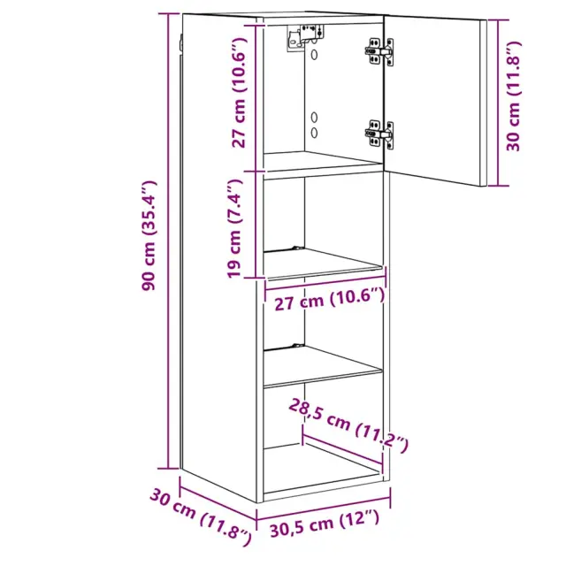 vidaXL Stenska TV omarica z LED lučmi Črna Orehovina 30,5 x 30 x 90 cm