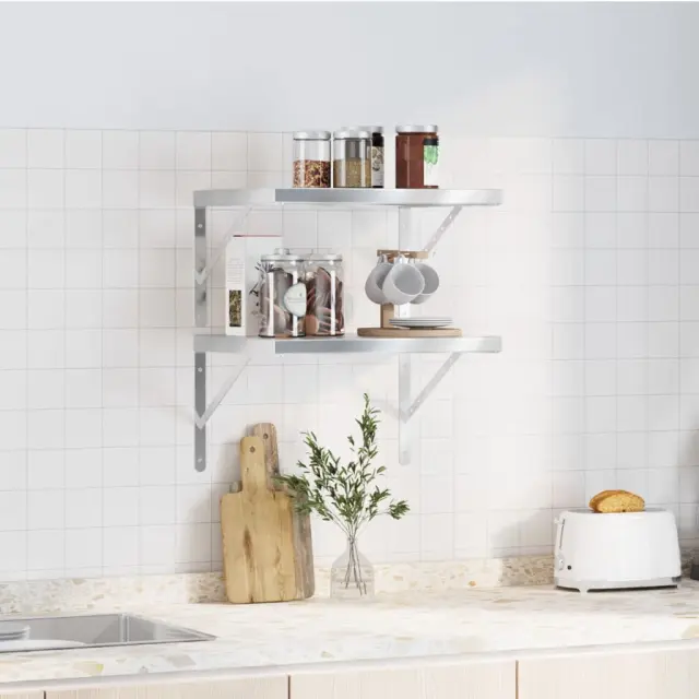 vidaXL Stenske police 2 kosa 50x40 cm srebrna nerjaveče jeklo