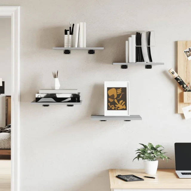 vidaXL Stenske police 4 kosi siva sonoma 40x30x1,5 cm inženirski les