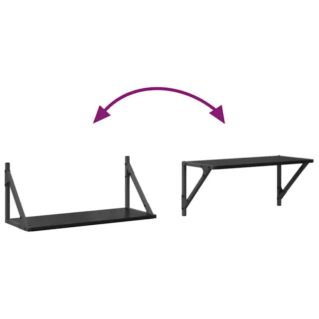 vidaXL Stenske police s polico 2 pcs Črna Orehovina 60 x 25 x 25,5 cm