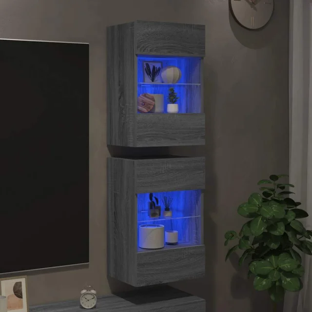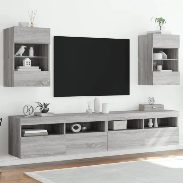 vidaXL Stenske TV omarice z LED 2 kosa siva sonoma 40x30x60,5 cm