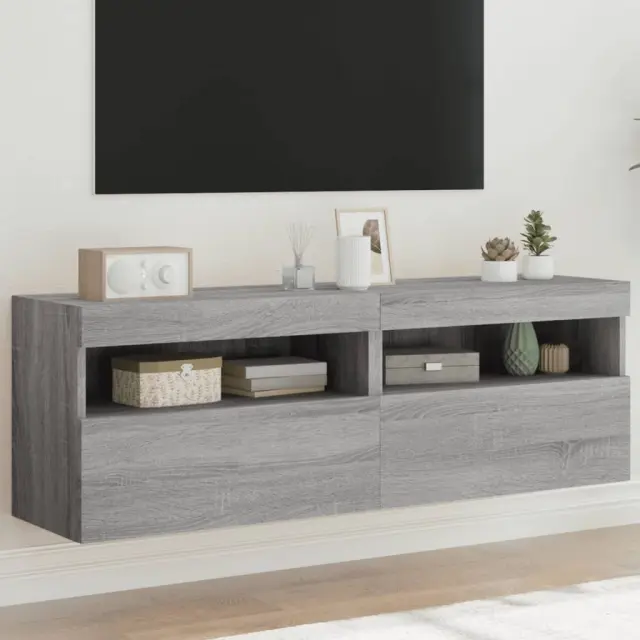 vidaXL Stenske TV omarice z LED 2 kosa siva sonoma 60x30x40 cm