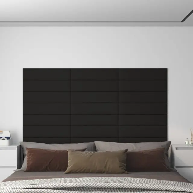 vidaXL Stenski paneli 12 kosov črni 60x15 cm blago 1,08 m²
