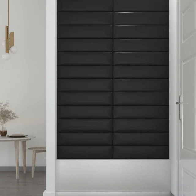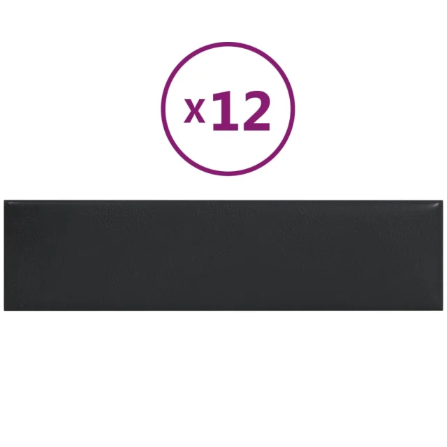 vidaXL Stenski paneli 12 kosov črni 60x15 cm umetno usnje 1,08 m²