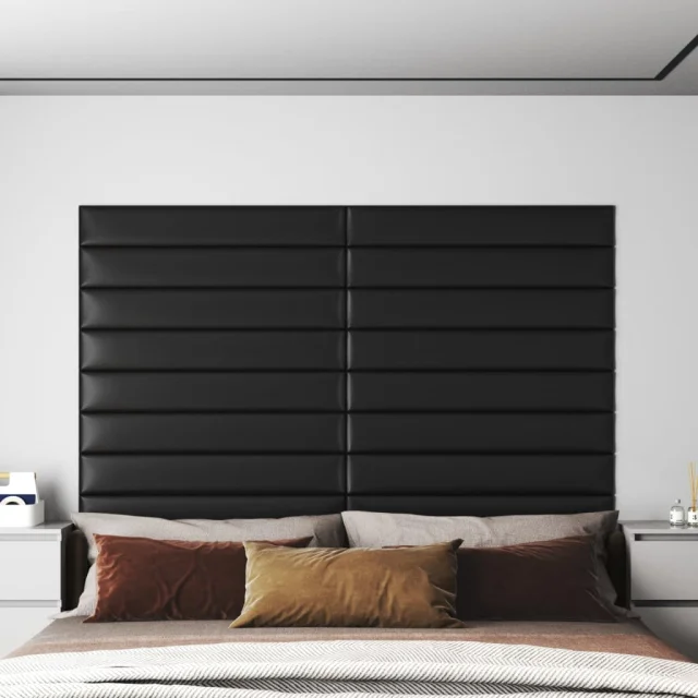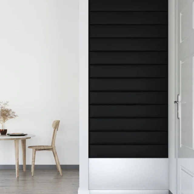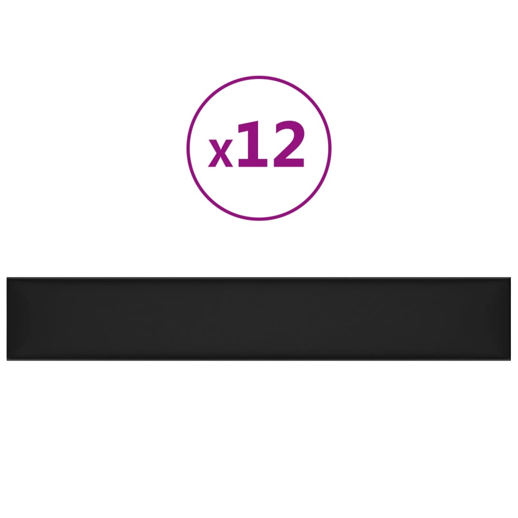 vidaXL Stenski paneli 12 kosov črni 90x15 cm umetno usnje 1,62 m²