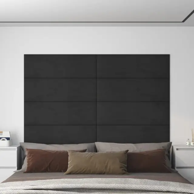 vidaXL Stenski paneli 12 kosov črni 90x30 cm žamet 3,24 m²