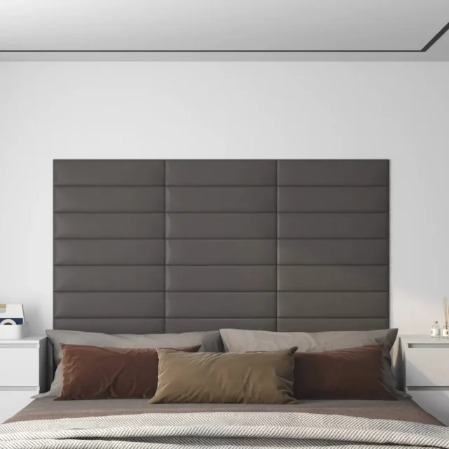 vidaXL Stenski paneli 12 kosov sivi 60x15 cm umetno usnje 1,08 m²