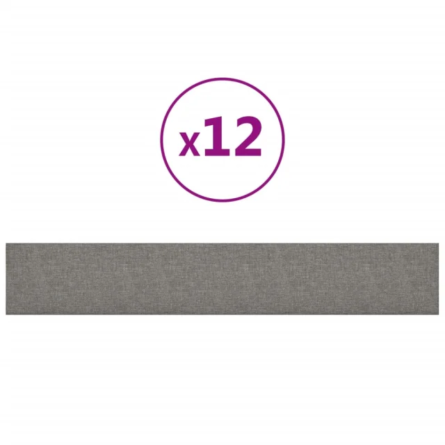 vidaXL Stenski paneli 12 kosov svetlo sivi 90x15 cm blago 1,62 m²