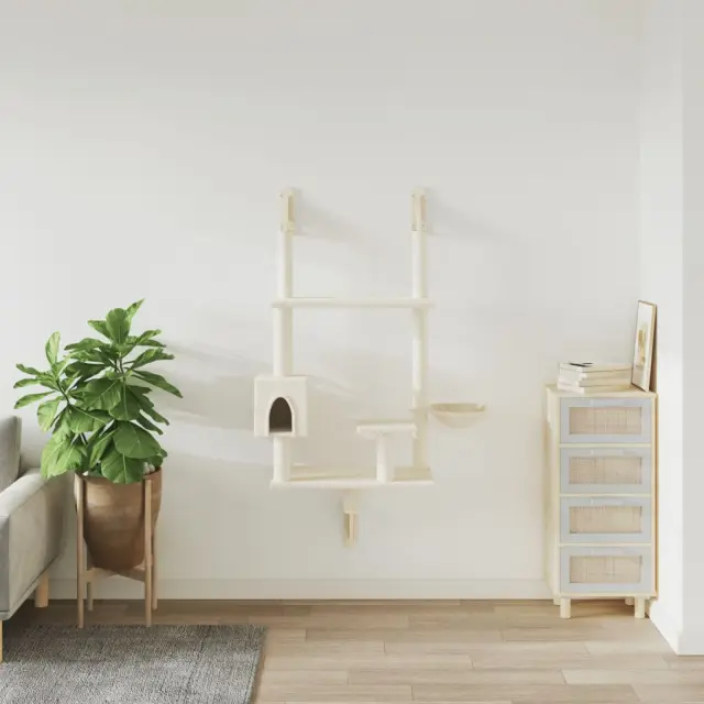 vidaXL Stensko mačje drevo s praskalnikom krem 153 cm