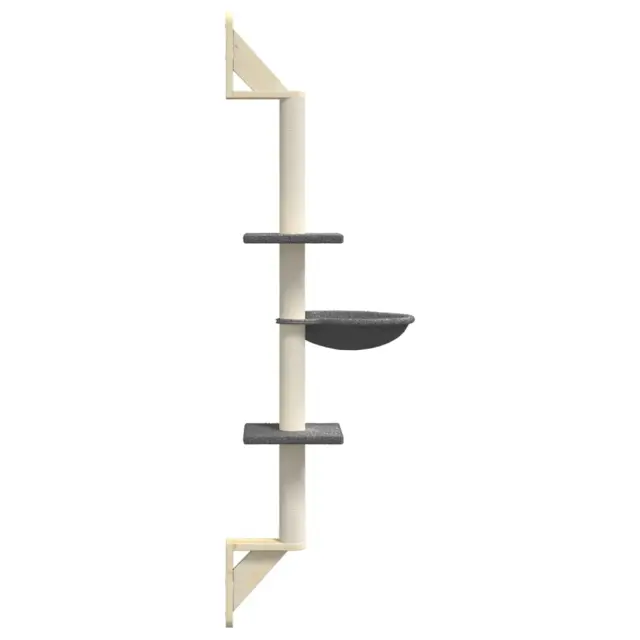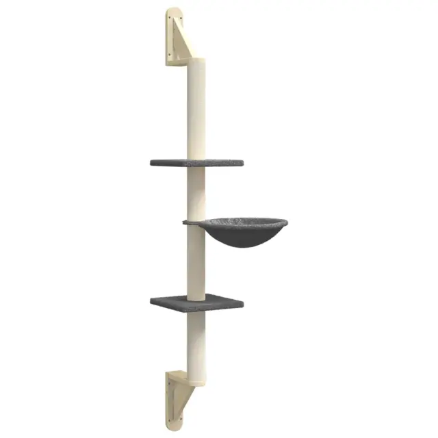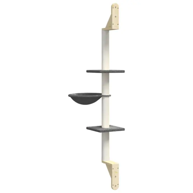 • Robustna konstrukcija: Stensko mačje drevo je ojačano z robustnimi trikotnimi podporami, ki zagotavljajo varnost in stabilnost, tako da se lahko vaša mačka mirno igra in počiva.