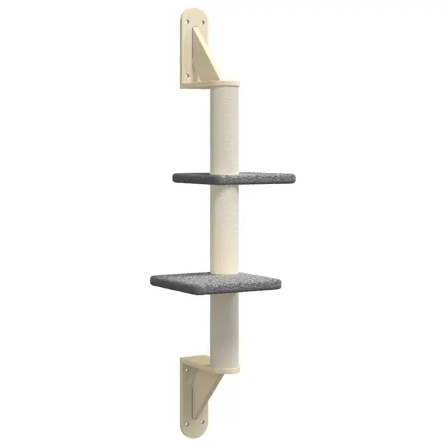 • Robustna konstrukcija: Stensko mačje drevo je ojačano z robustnimi trikotnimi podporami, ki zagotavljajo varnost in stabilnost, tako da se lahko vaša mačka mirno igra in počiva.