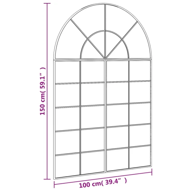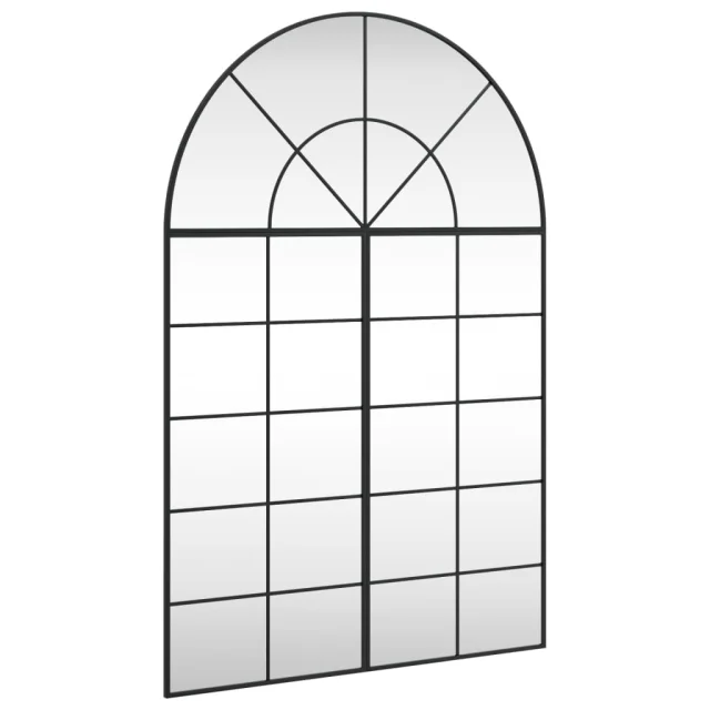vidaXL Stensko ogledalo črno 100x150 cm obokano železo