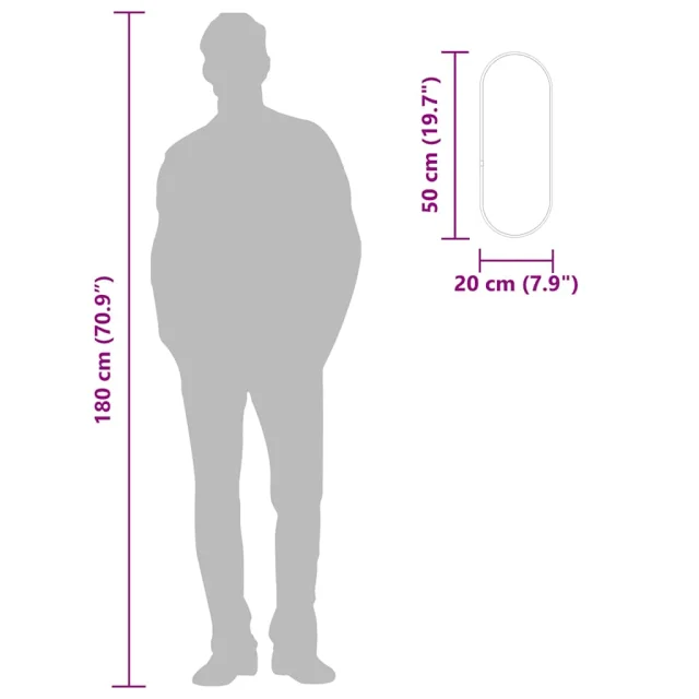 vidaXL Stensko ogledalo črno 50x20 cm ovalno