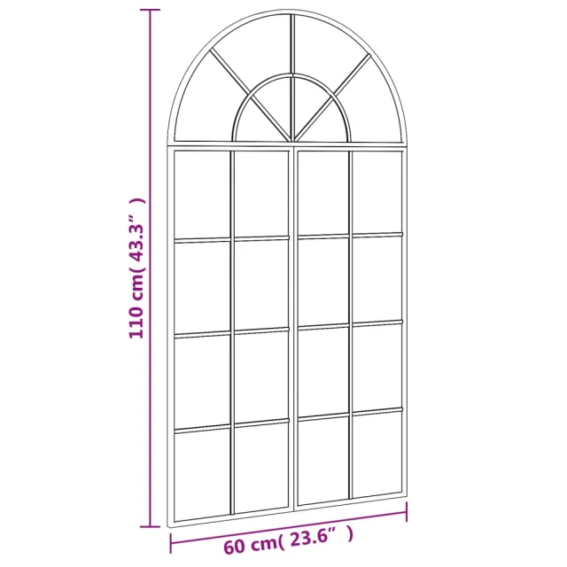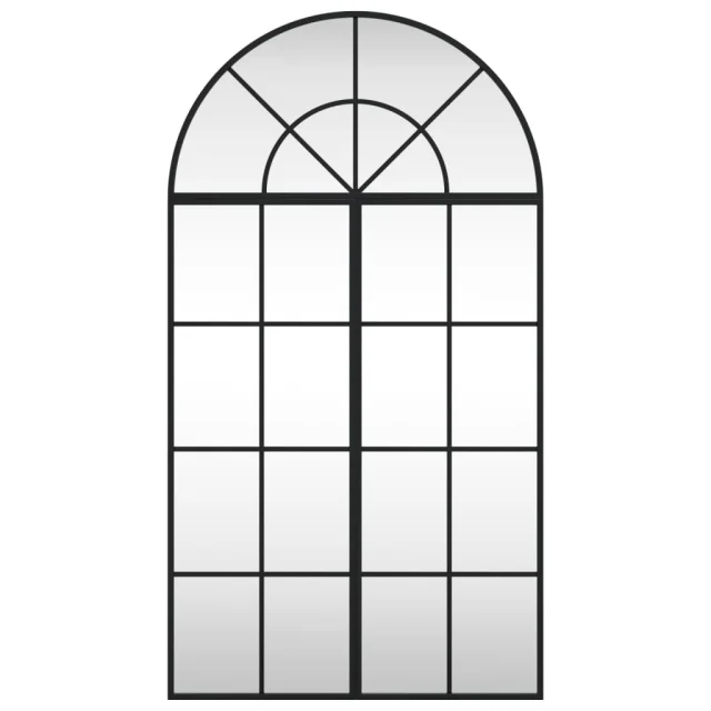 vidaXL Stensko ogledalo črno 60x110 cm obokano železo