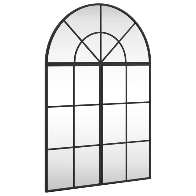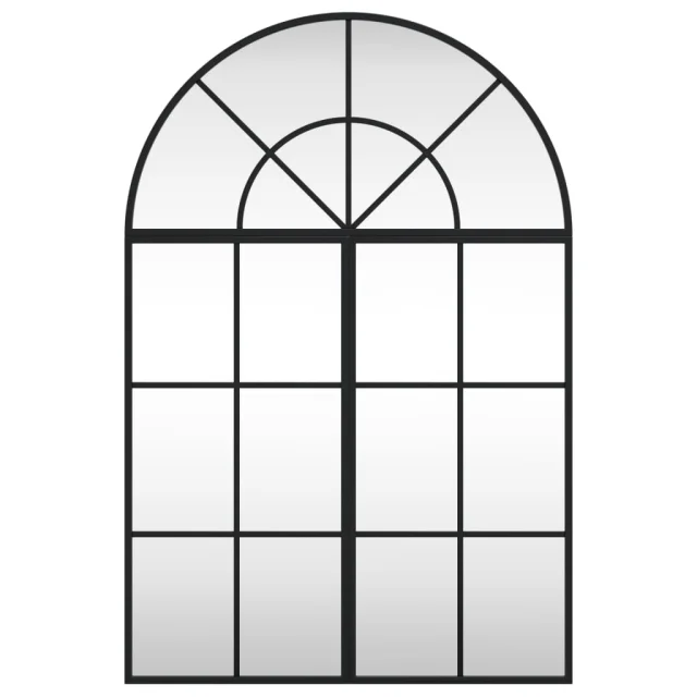 vidaXL Stensko ogledalo črno 60x90 cm obokano železo