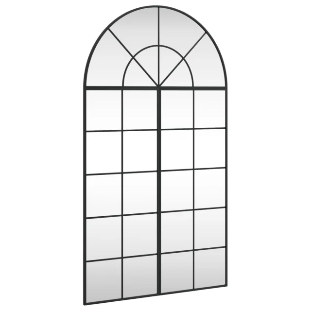 vidaXL Stensko ogledalo črno 80x140 cm obokano železo