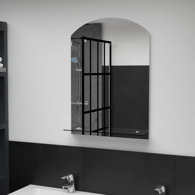 vidaXL Stensko ogledalo s polico 50x70 cm kaljeno steklo