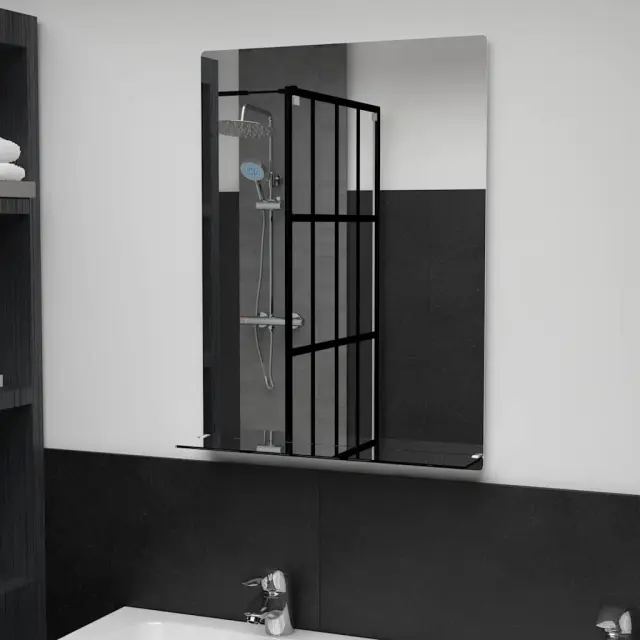 vidaXL Stensko ogledalo s polico 50x70 cm kaljeno steklo