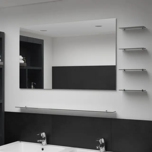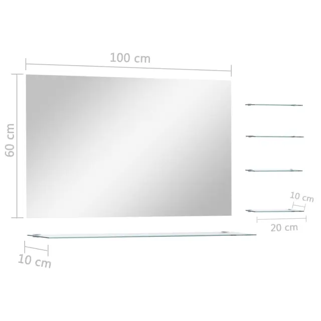 Naše stensko ogledalo s policami je okrašeno z elegantnim dizajnom. Predstavljalo bo praktičen in tudi dekorativen dodatek za vašo kopalnico, dnevno sobo ali spalnico. To kopalniško pohištvo iz kakovostnega kaljenega stekla je vzdržljivo in enostavno za čiščenje. Ogledalo s pravokotnim okvirjem ter minimalističnim in sodobnim dizajnom bo polepšalo vsak prostor, štiri majhne in ena velika polica pa zagotavljajo, da je to praktičen kos pohištva z dodatnim prostorom za shranjevanje. Dekorativne predmete ali druge pripomočke lahko pospravite in razstavite na lep in urejen način. To ogledalo je enostavno za sestavo.Barva: SrebrnaMaterial: Kaljeno stekloVelikost: 100 x 60 cm (Š x V)Velikost spodnje police: 100 x 10 cm (Š x G)Velikost majhne police: 20 x 10 cm (Š x G)Enostavna namestitev na stenoPotrebno sestavljanje: Da 249446