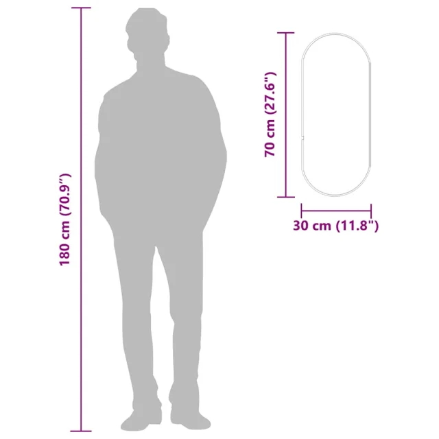 vidaXL Stensko ogledalo srebrno 70x30 cm ovalno