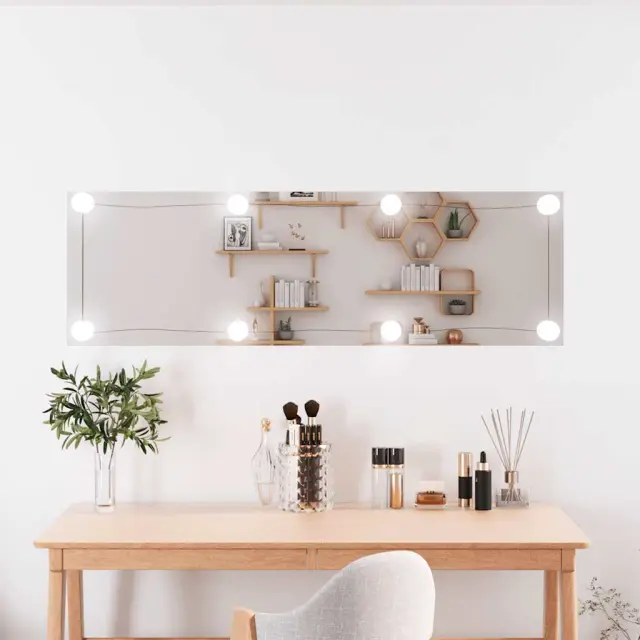 vidaXL Stensko ogledalo z LED lučmi 30x100 cm stekleni pravokotnik